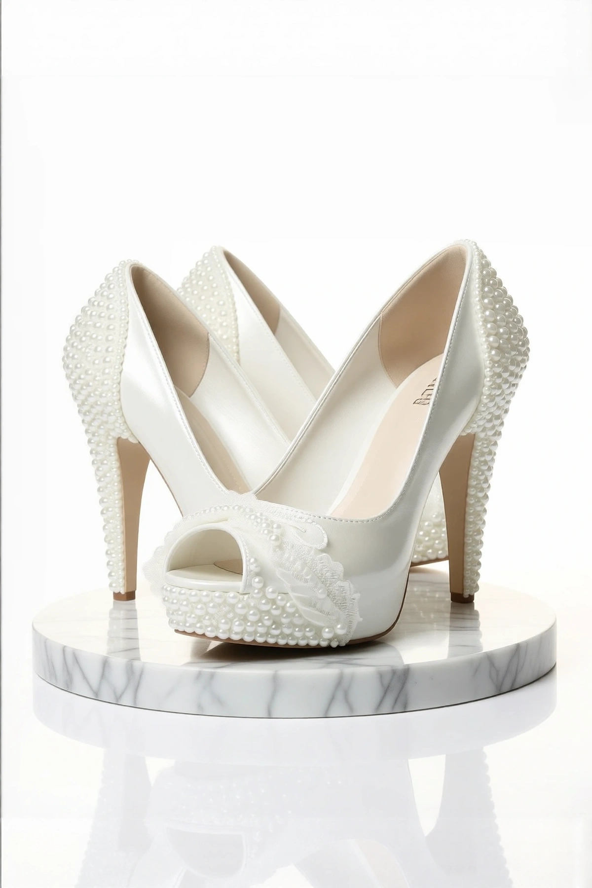 Kadın Moda Beyaz Inci Taş Işlemeli Gelin Ayakkabı Topuklu Düğün Nişan Gece Abiye Ayakkabı
