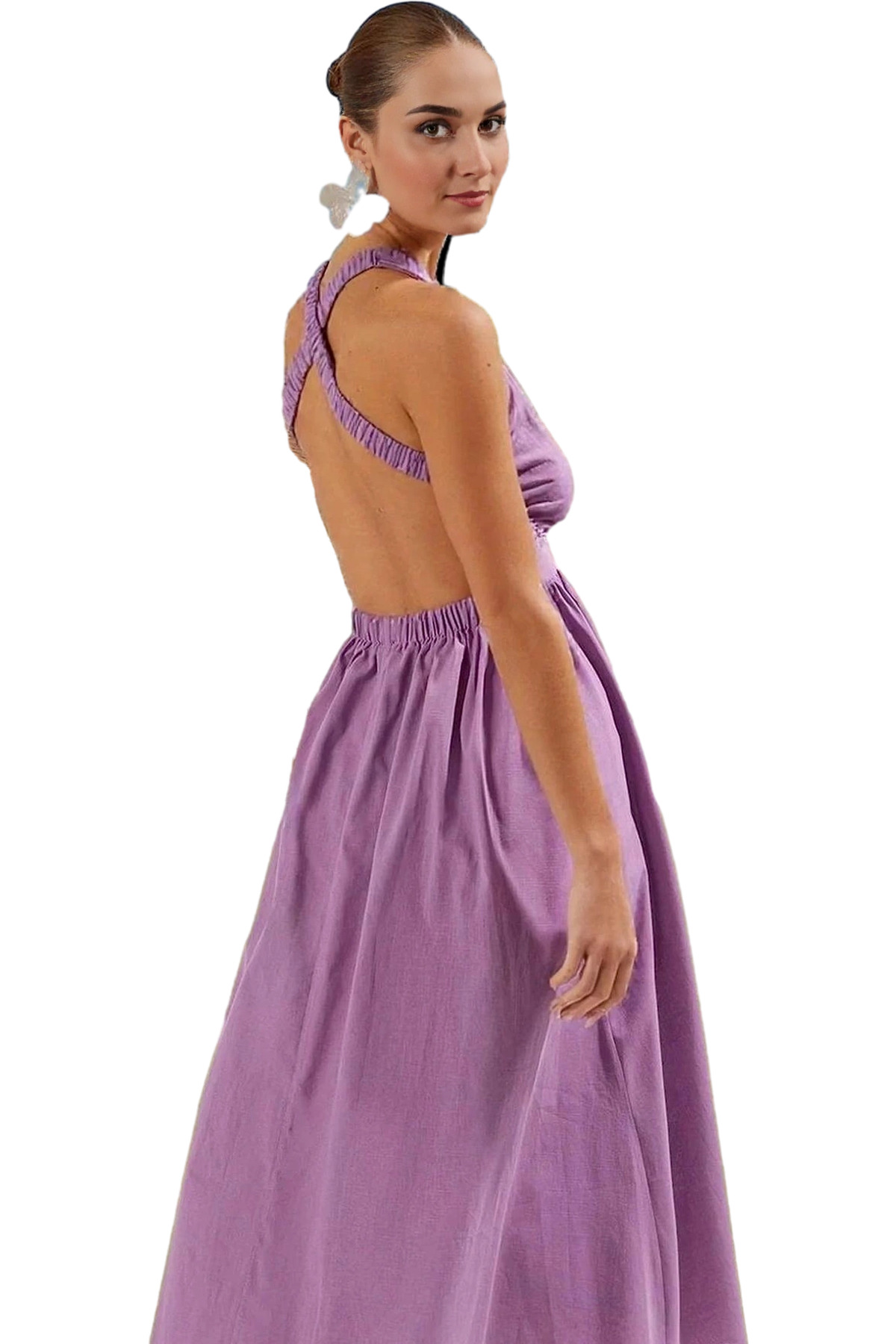 Kadın Midi Boy Flamlı Pamuk Elbise Sırt Dekolteli Yazlık Skater Kalıp Yaz Aylarının Vazgeçilmezi