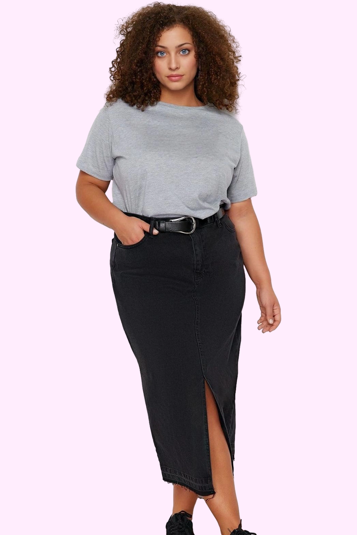 Kadın Denim Etek Yüksek Bel A line Düz Desen Pamuklu Günlük Kombinler Yaz Aylarının Vazgeçilmezi