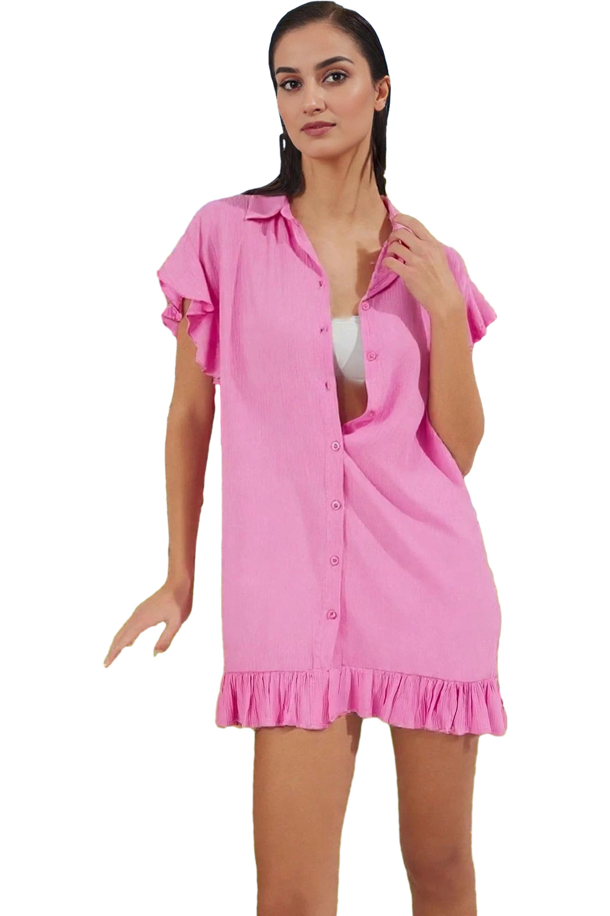 Kadın Denim Gömlek Elbise Kısa Kollu Mini Boy Pamuk Günlük Kullanım Yaz Aylarının Vazgeçilmezi