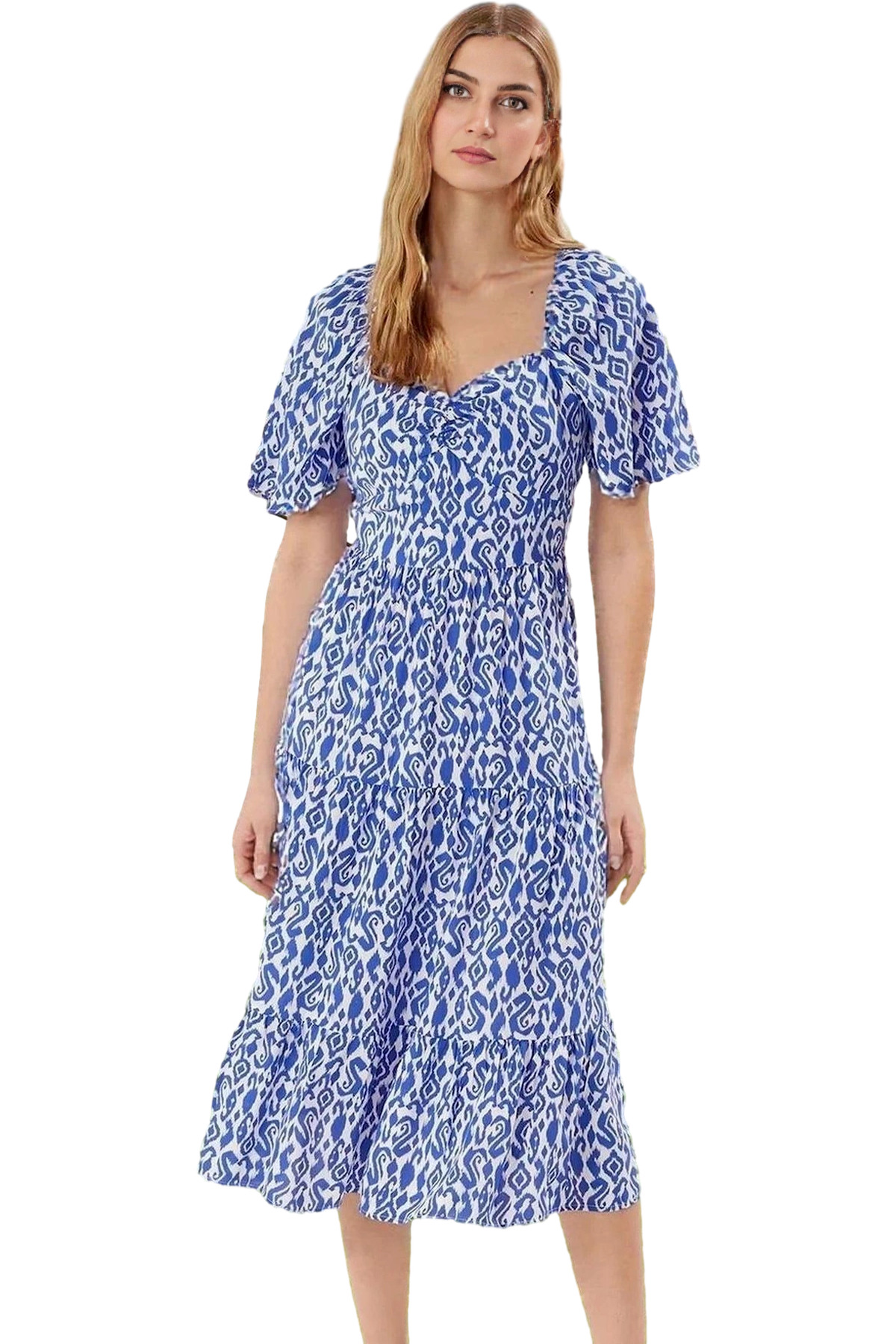 Kadın Midi Elbise Geometrik Desenli V Yaka Viskoz Günlük Şık Hafta Sonu Yaz Aylarının Vazgeçilmezi
