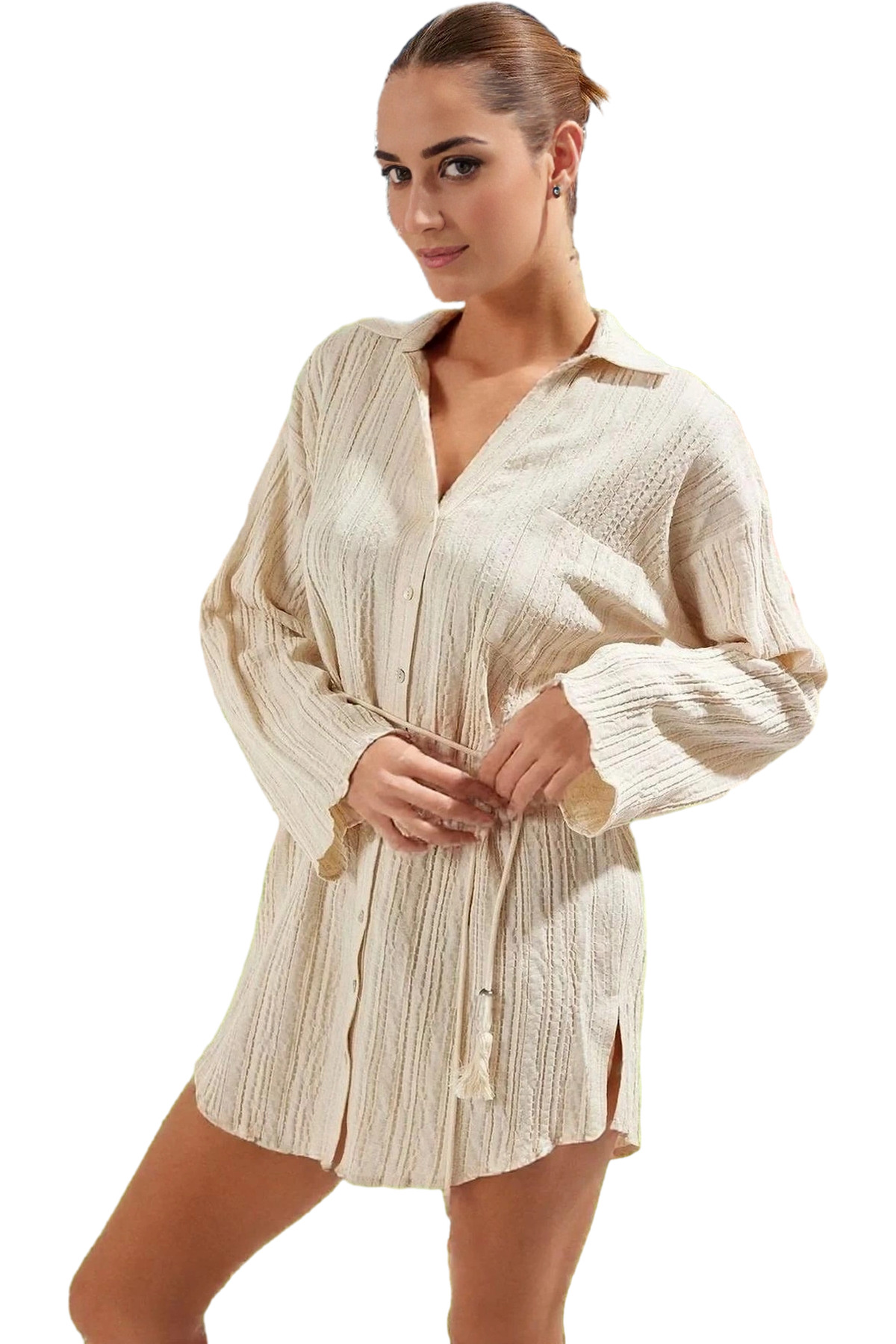 Kadın Plaj Elbisesi Keten Görünümlü Tek Kol Bisiklet Yaka Yazlık Pamuklu Rahat Günlük Kullanım