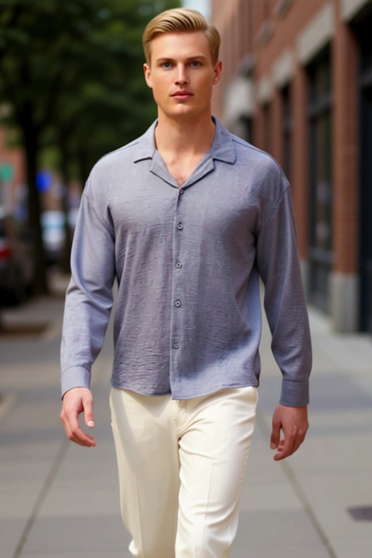 Erkek Çizgili Dokuma Kumaş Uzun Kollu Gömlek Modern Kesim Yumuşak Dokusuyla İş Ve Sosyal Ortamlar