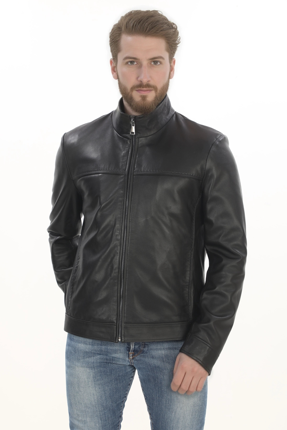 Erkek Şehir Stiline Uygun Derimont Model Hakiki Kuzu Derisi Ceket Fermuarlı Dik Yaka