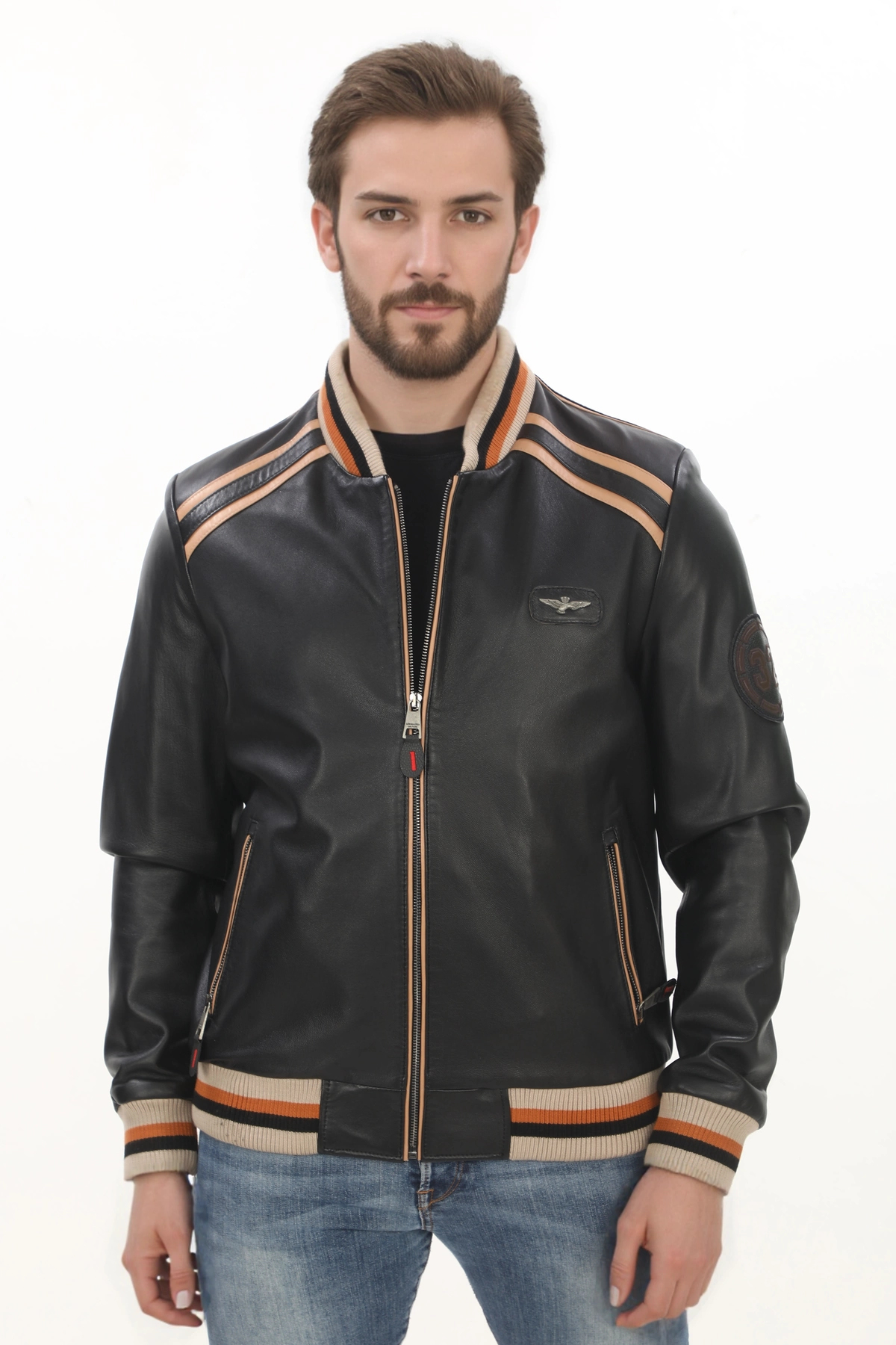 Erkek Spor ve Şıklık Bir Arada Derimont Varsity Hakiki Kuzu Derisi Bomber Ceket Erkek Mont