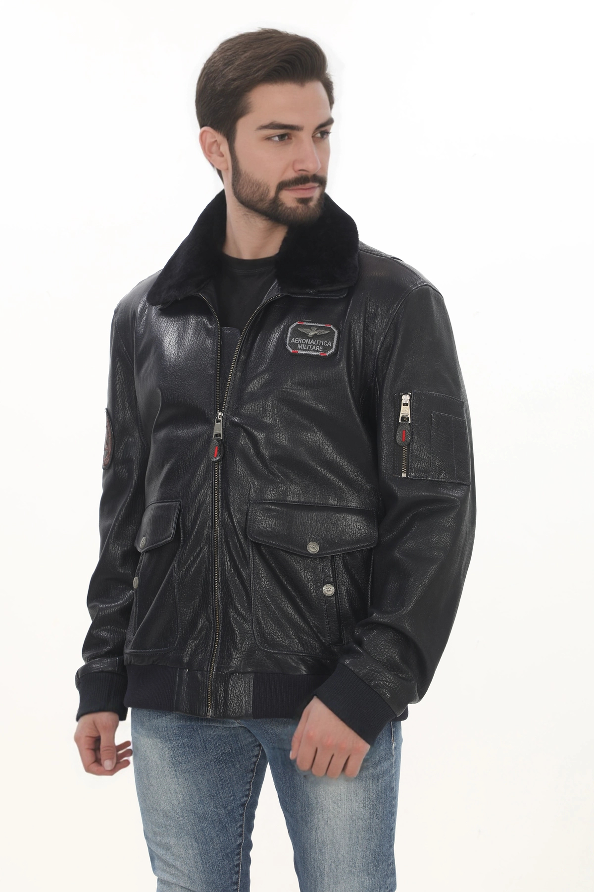 Erkek Pilot Stili Derimont El Yapımı Hakiki Kuzu Derisi Erkek Bomber Ceket Kürklü Kışlık
