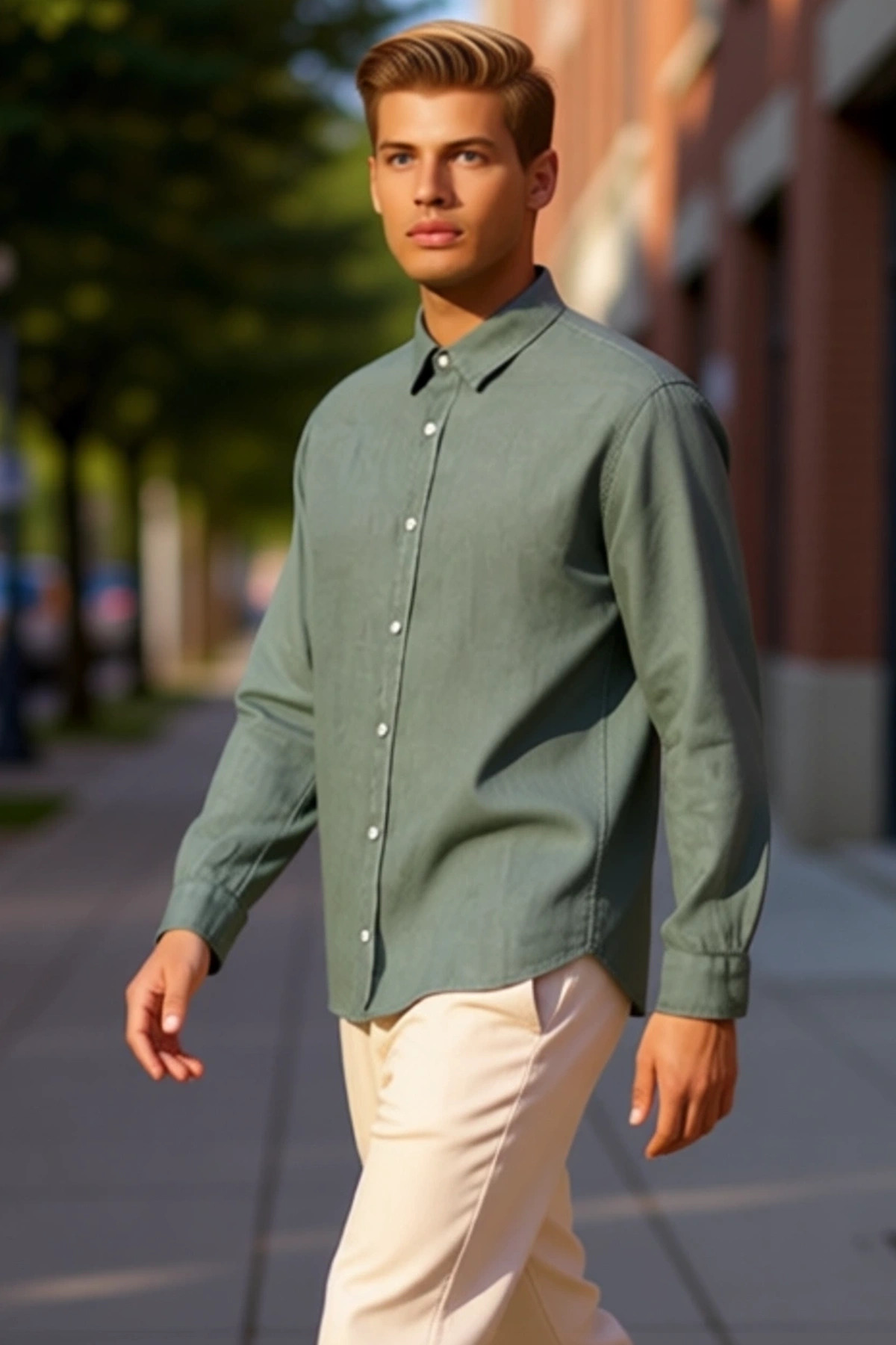 Erkek Slim Fit Düğmeli Yaka Flanel Dokuma Uzun Kollu Kışlık Gömlek Casual Ve Smart Görünümler