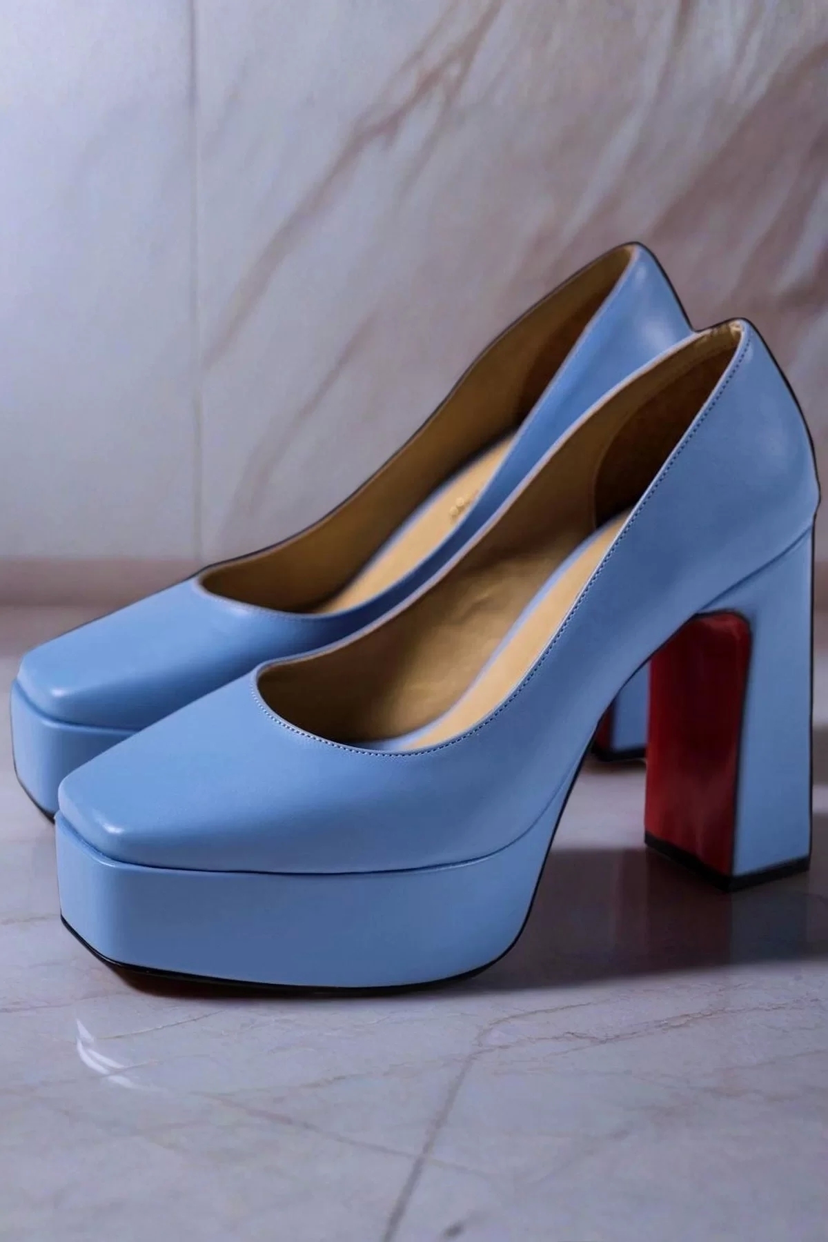 Kadın Elegant Ayakkabı Bebe Mavi Kalın Topuklu Ayakkabı Stiletto Özel Tasarım Abiye Ayakkabı