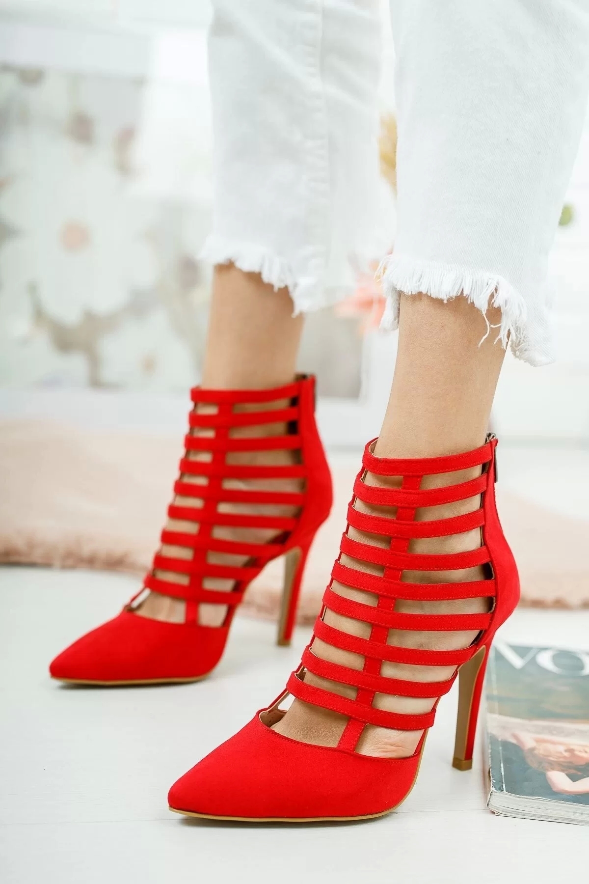 Kadın Elegant Ayakkabı İnce Topuklu Baretli Ayakkabı Stiletto Özel Tasarım Abiye Ayakkabı