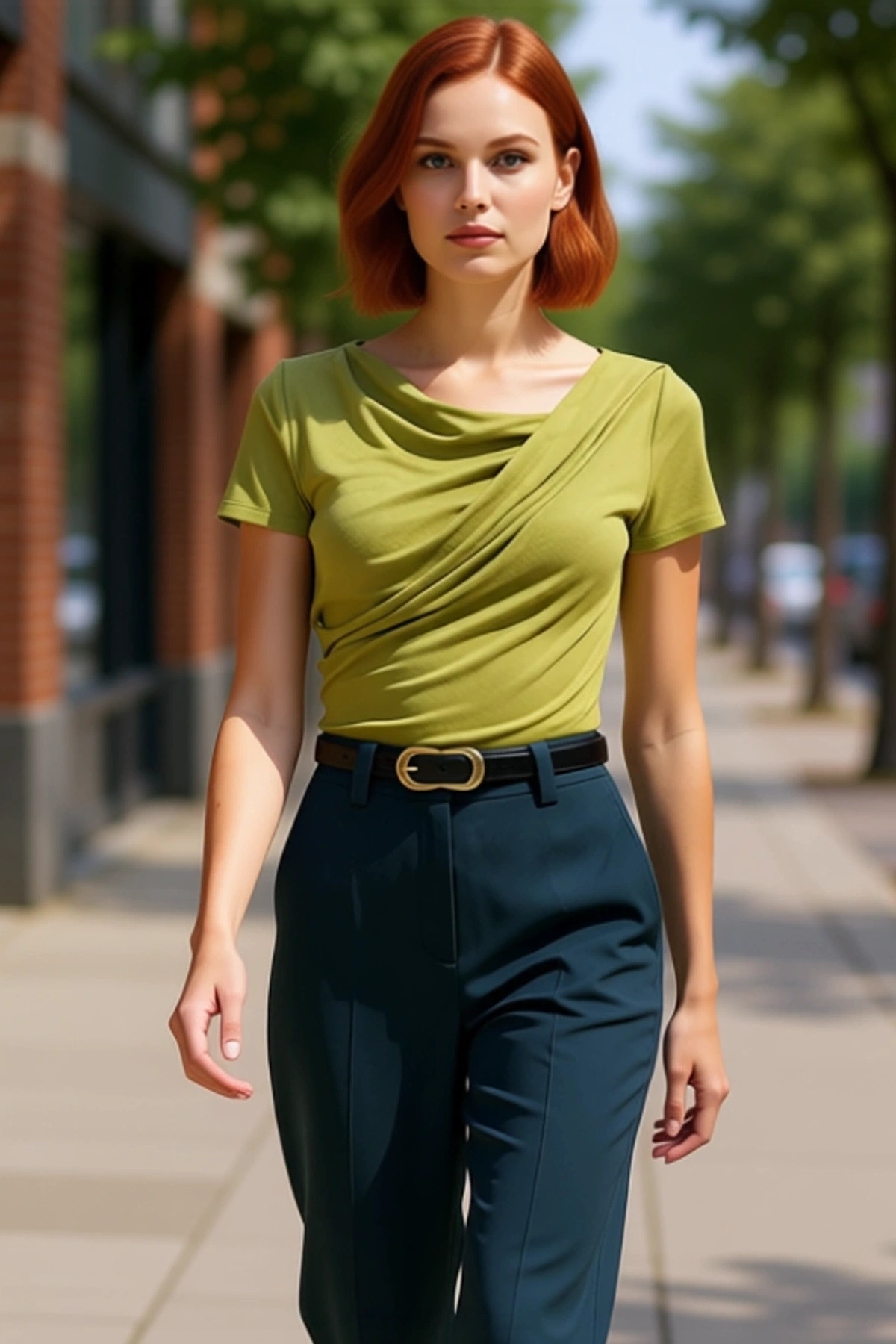 Kadın Lacivert V Yaka Balon Kol Esnek Örme Kruvaze Detaylı Smart Bluz Günlük Kullanım İçin İdeal