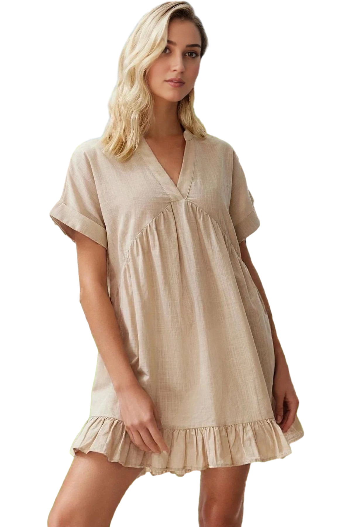 Kadın Mini Elbise Keten Karışımlı Rahat Günlük Yazlık Stil Shift Kalıp Yaz Aylarının Vazgeçilmezi