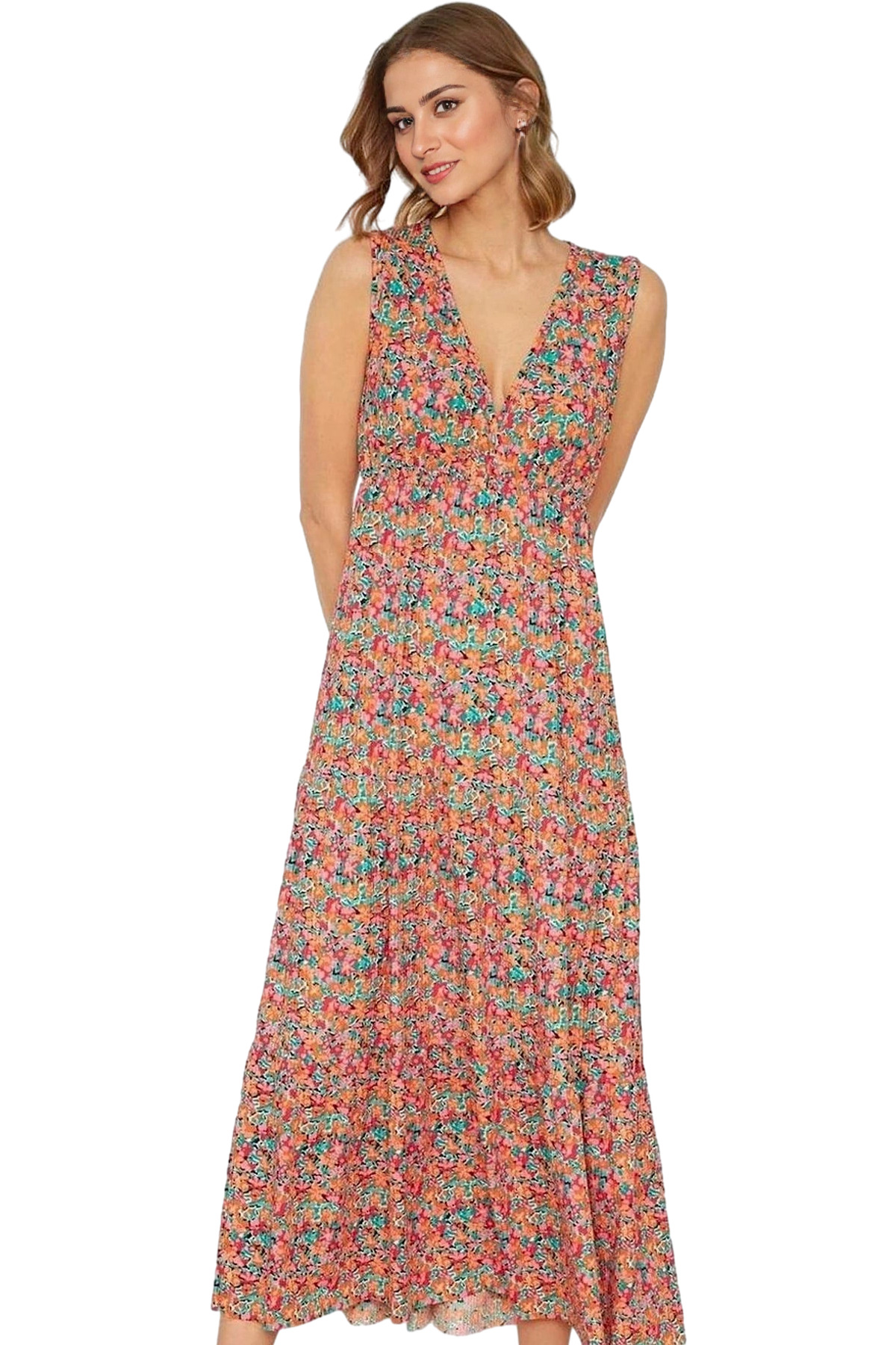 Kadın Çiçekli Desenli V Yaka Maxi Elbise Rahat Kalıp Günlük Kombinler Yaz Aylarının Vazgeçilmezi