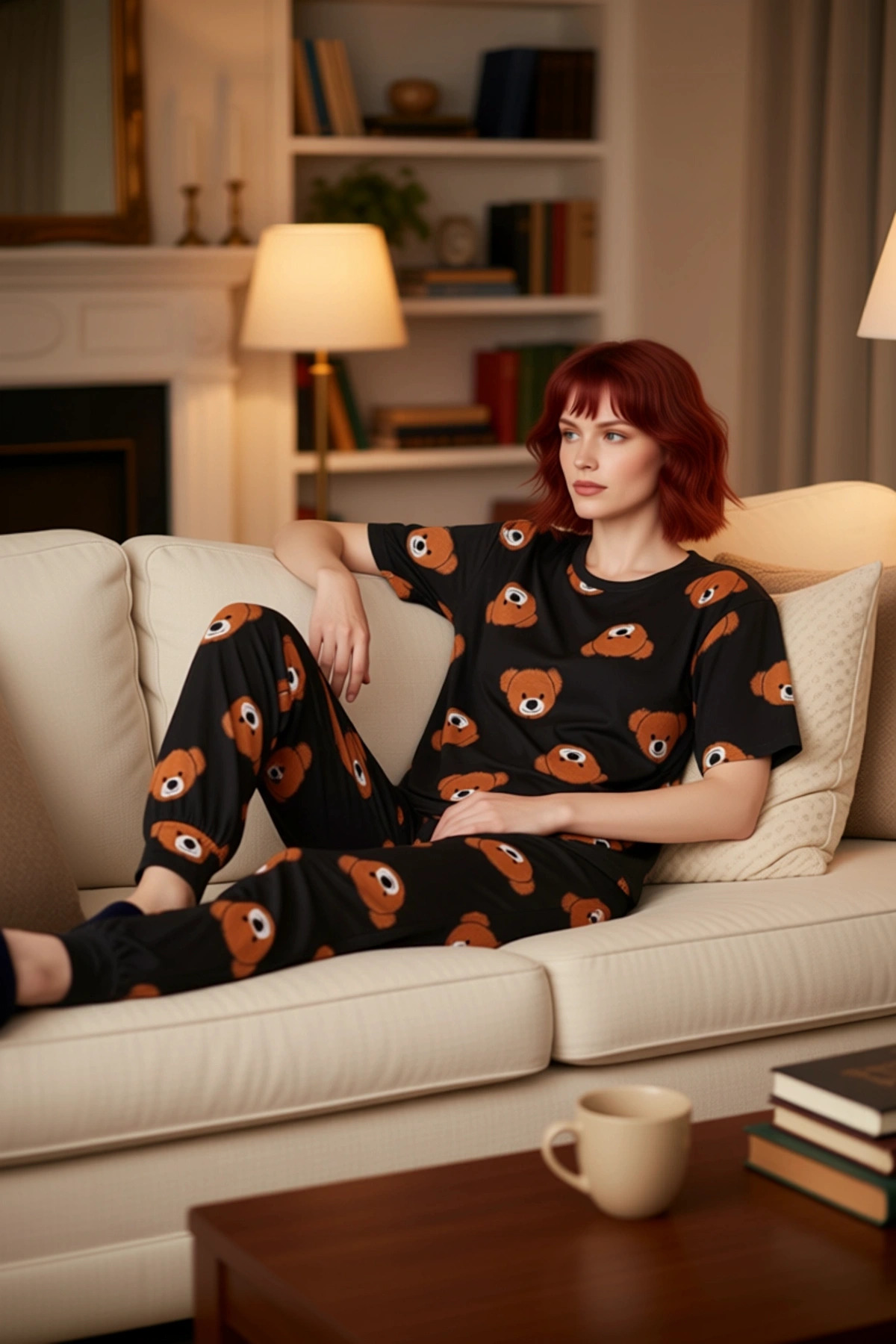 Kadın Ayıcık Desenli Polar Pijama Takımı Fonksiyonel Dayanıklı Kaliteli Konforlu Estetik Şık