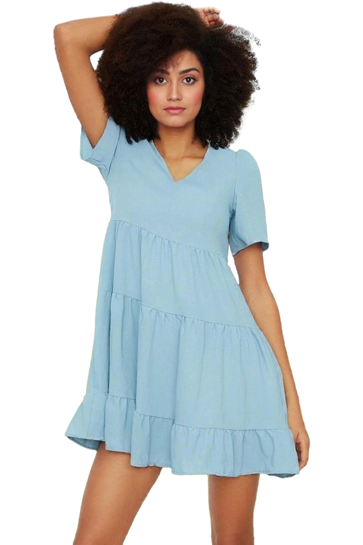 Kadın A Kesim Mini Elbise V Yaka Astarlı Şifon Yazlık Rahat Modern Stil Yaz Aylarının Vazgeçilmezi