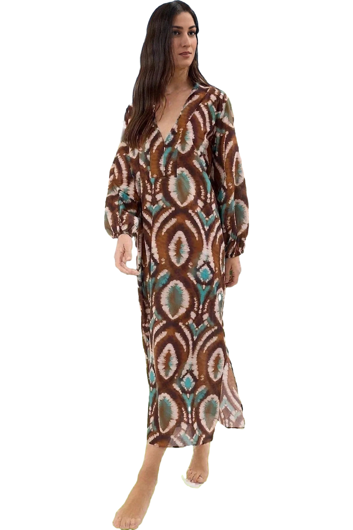 Kadın Maxi Elbise V Yaka Yırtmaçlı Yazlık Plaj Elbisesi Rahat Kullanım Yaz Aylarının Vazgeçilmezi