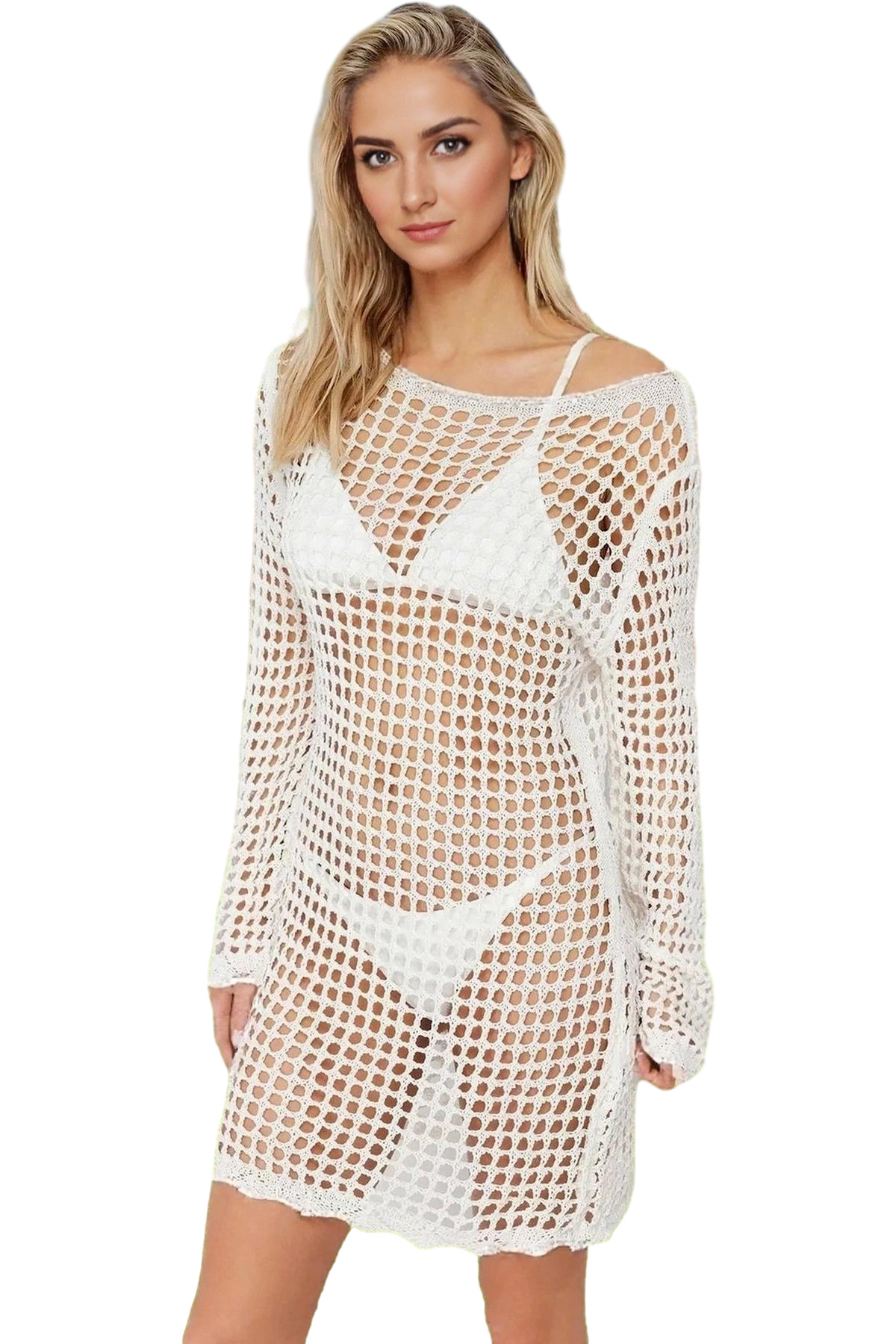 Kadın Maxi Şeffaf Örme Plaj Elbisesi Volanlı Detaylar Yazlık Rahat Yaz Aylarının Vazgeçilmezi