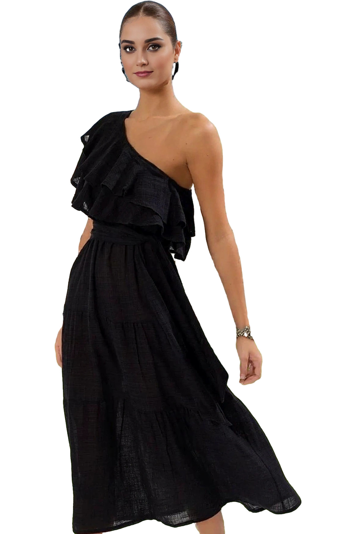 Kadın Kemerli Plise Midi Elbise Şifon Kumaş Yazlık Günlük Hafta Sonu Yaz Aylarının Vazgeçilmezi