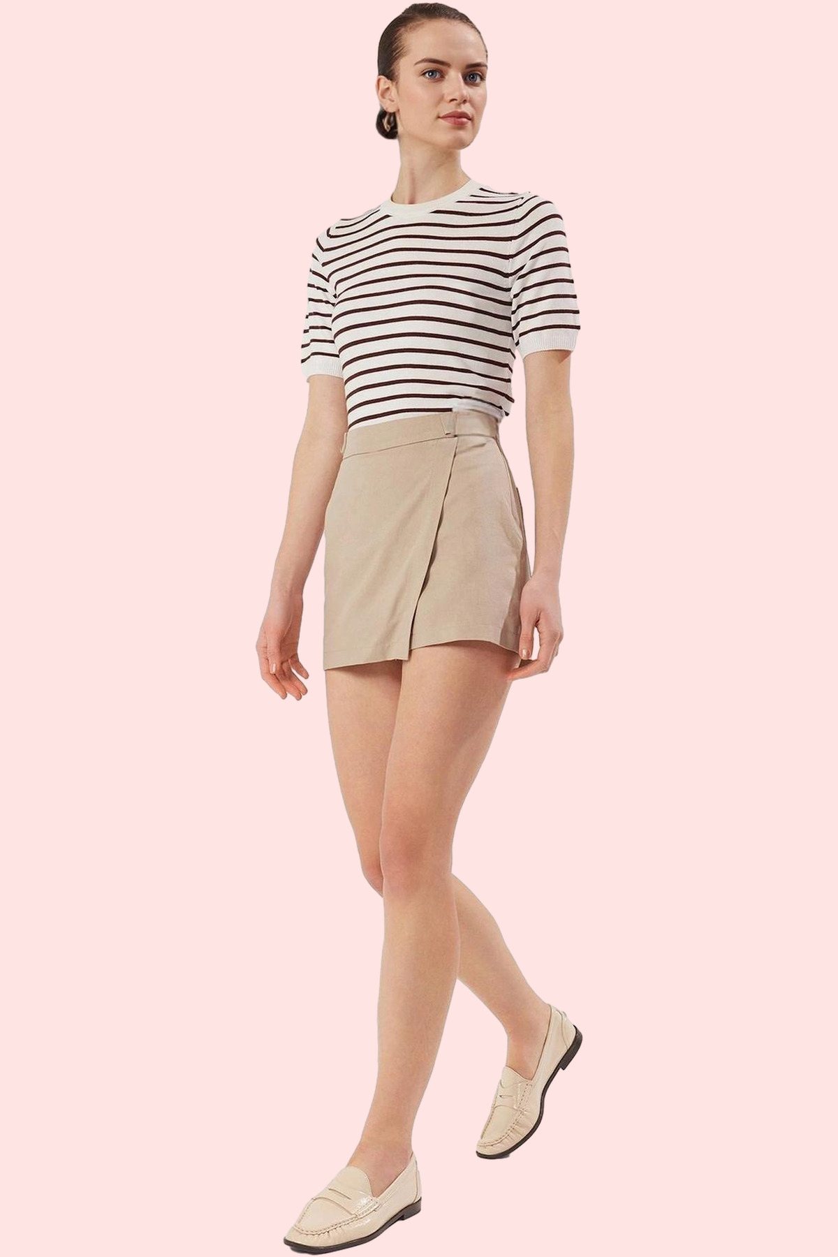 Kadın Keten Karışımlı Dokuma Şort Yüksek Bel Geniş Paça Yazlık Günlük Kullanım Özel Günler