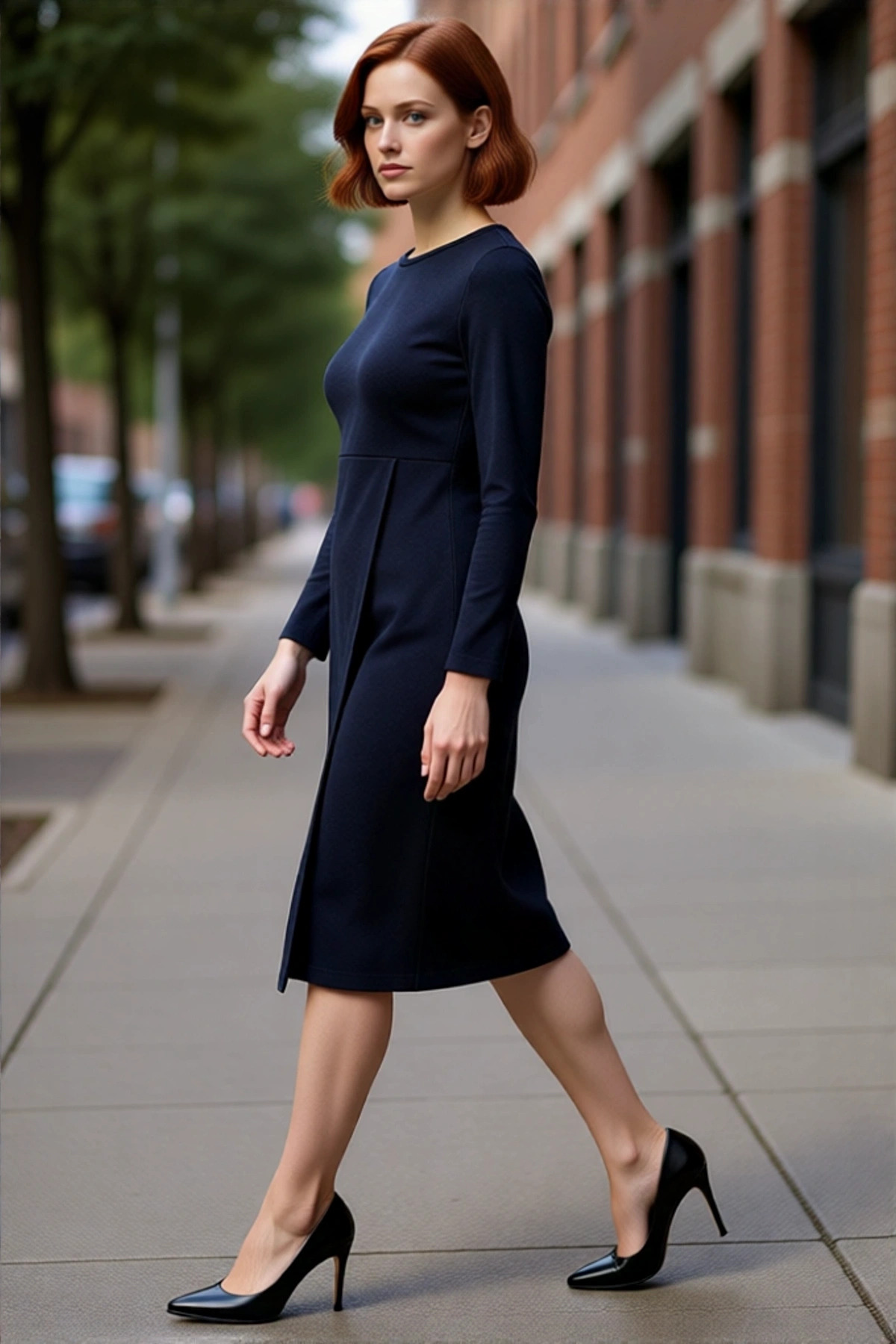 Kadınlar İçin Akrilik Triko Midi Elbise Bisiklet Yaka Uzun Kollu Düz Desen Günlük Şık Tasarım