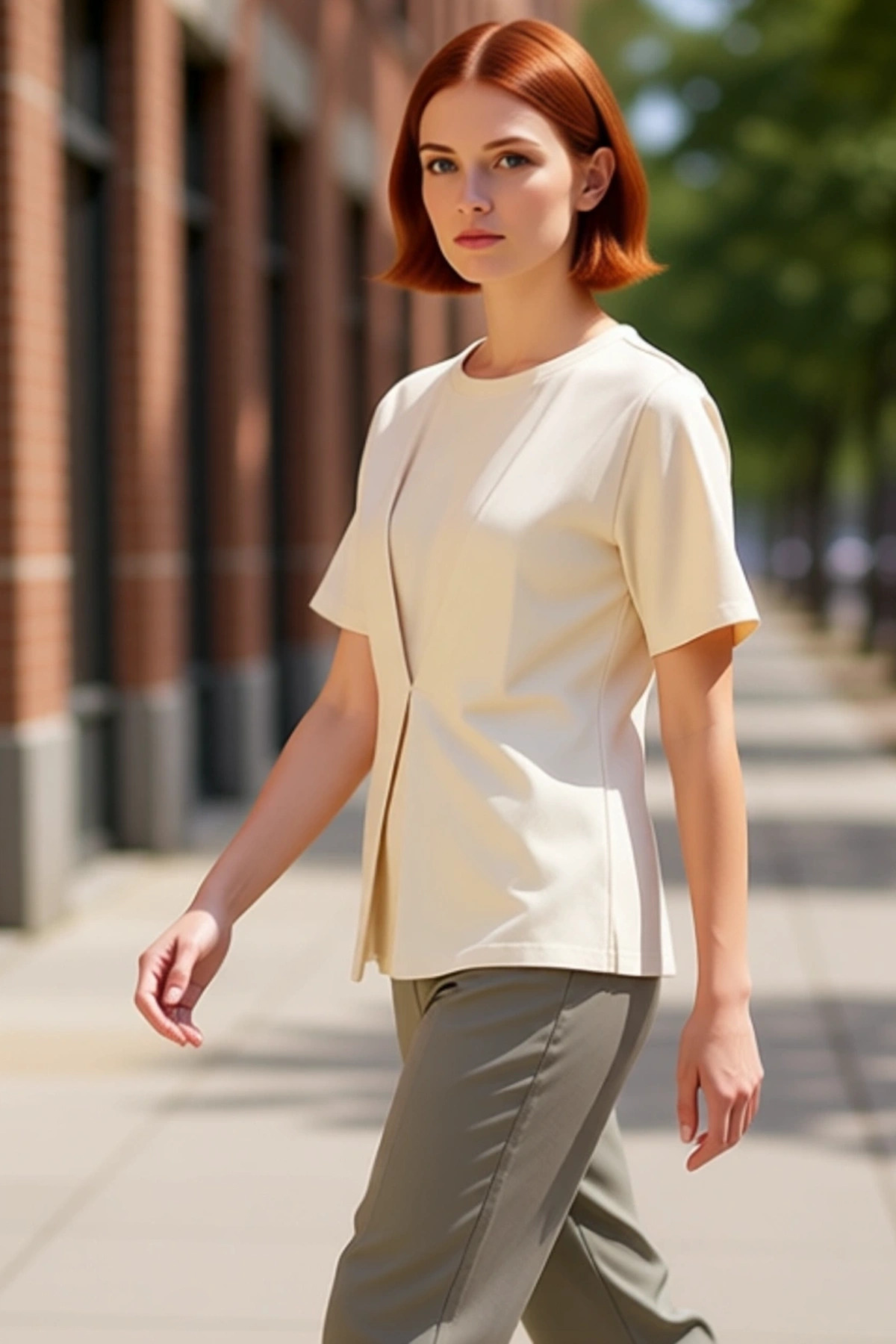 Kadın Ekru Dik Yaka Regular Fit Esnek Örme Bluz Gipe Kol Detaylı Smart Business Tarzı Klasik Kışlık