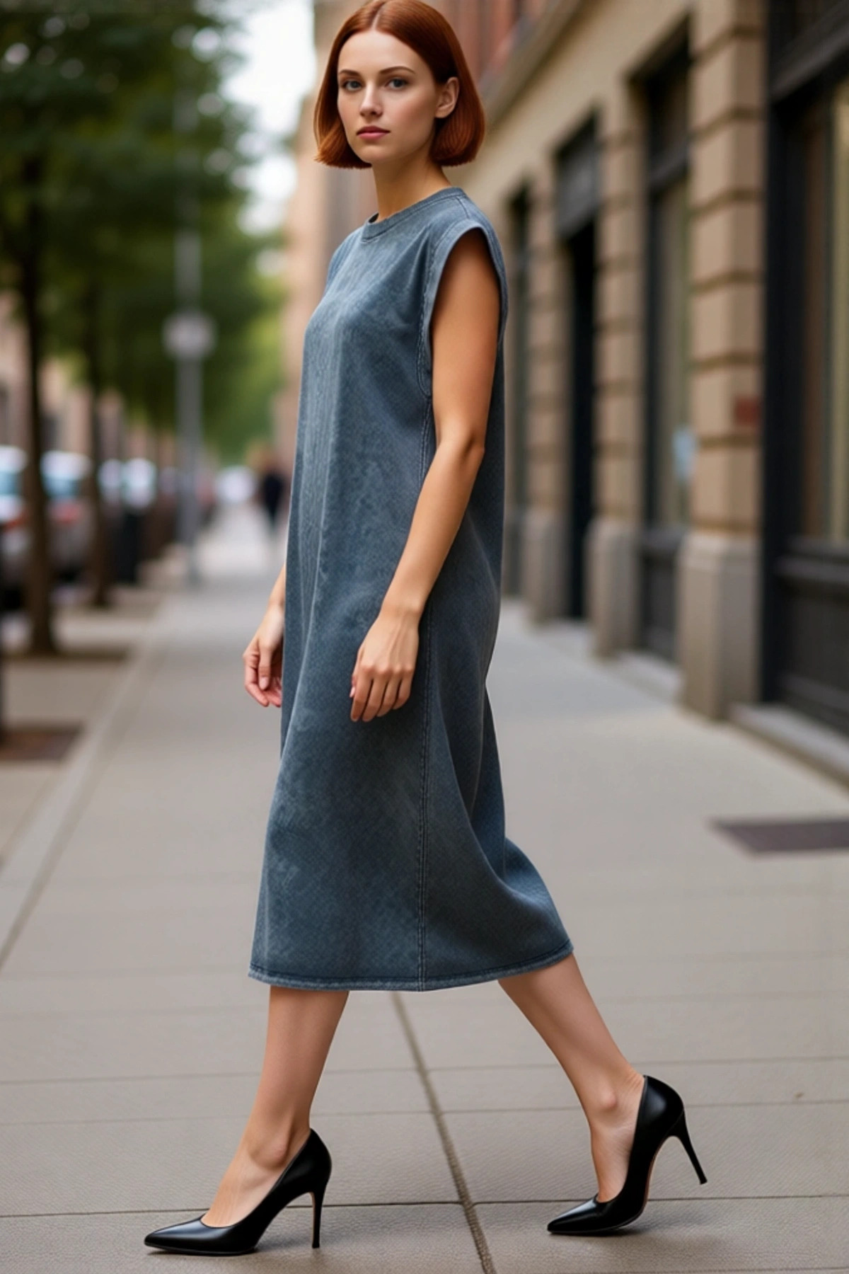 Kadın Skater Kalıp Kolsuz Bisiklet Yaka Maxi Triko Elbise Düz Desenli Modern İlkbahar Sonbahar