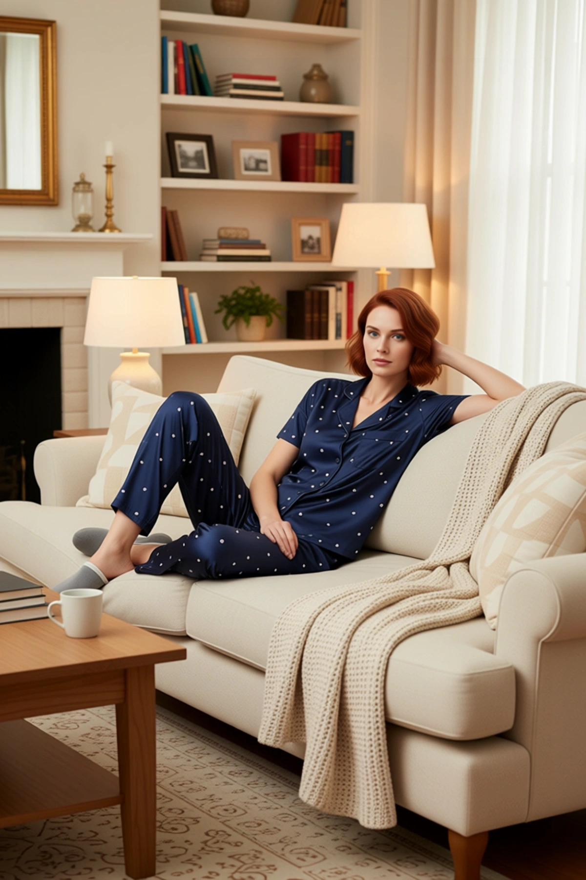 Kadın Kışlık Polar Örme Pijama Takımı Baskılı Desenli Uzun Paça Yüksek Kalite Rahat Ve Şık