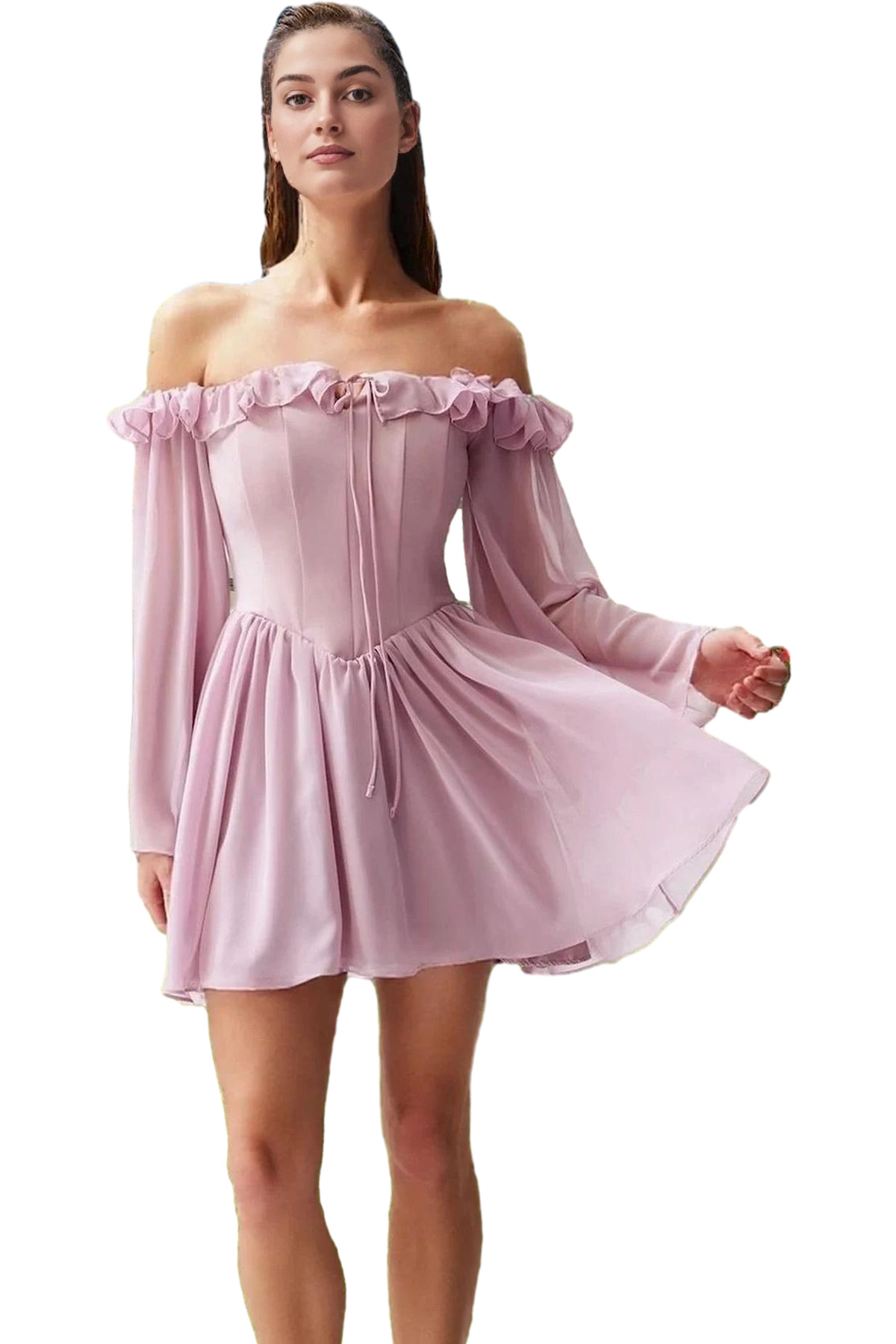 Kadın Şifon Mini Elbise Asimetrik Yaka Skater Kalıp Yazlık Özel Tasarım Yaz Aylarının Vazgeçilmezi