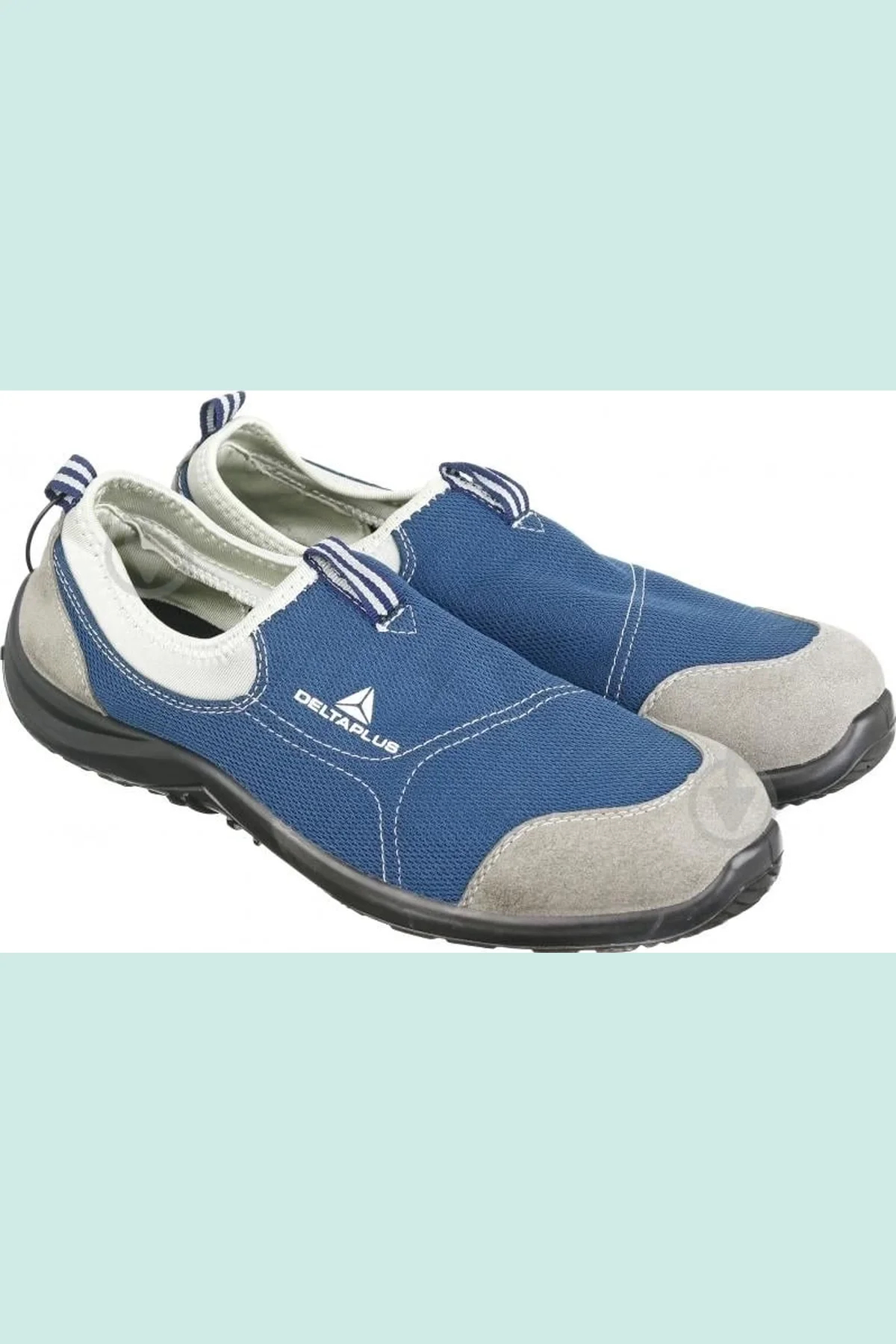 Delta Plus marka, mavi ve gri renk kombinasyonuna sahip, şık ve işlevsel bir iş güvenliği ayakkabısıdır.