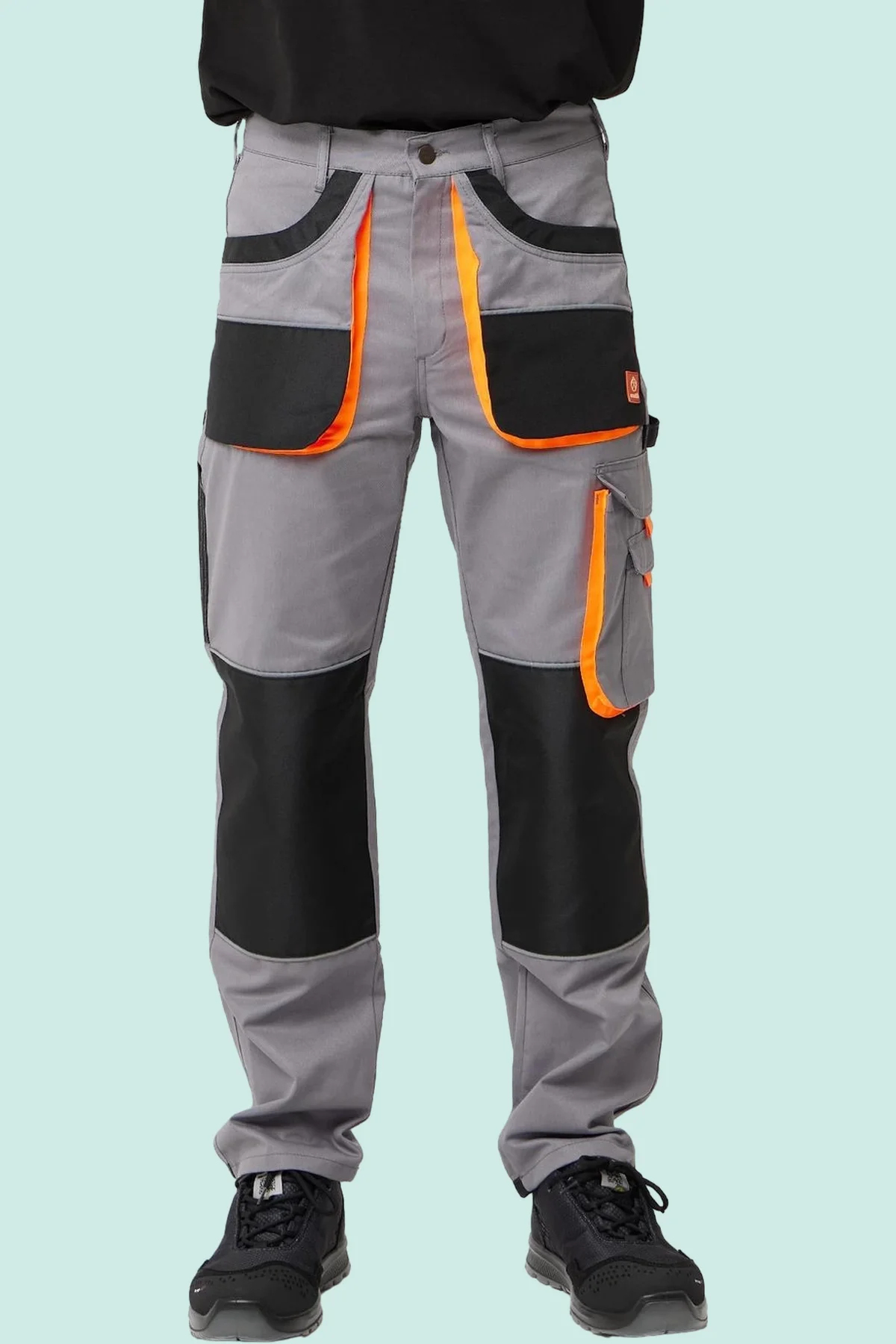 Zorlu iş koşullarına uygun, dayanıklı ve fonksiyonel tasarımıyla öne çıkan gri-siyah erkek iş pantolonu. Çok cepli yapısıyla işinize gereken her şeyi yanınızda taşımanıza olanak tanır.