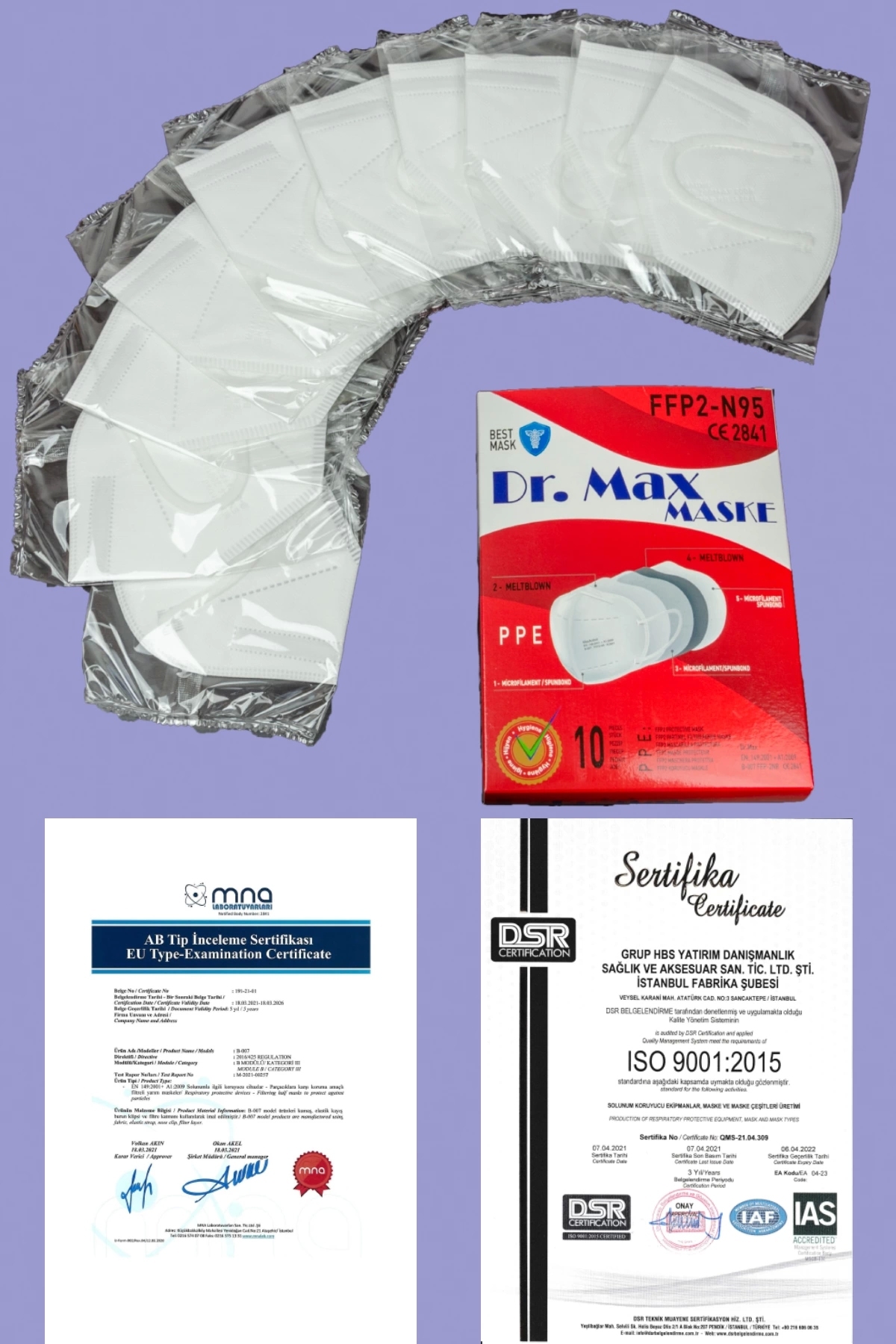 DR.Max Antivir maskeler AB standartlarında Hijyenik ortamda üretilmektedir. ; Ürünler üzerine Hijyen etiketi koyulmaktadır. ; FFP2 – N95 Maske, virüs-bakteriye karşı en etkili koruyucu ekipmanlar arasındadır. ; Ultralux Ürün 5 katlıdır, bunun 2 katı virüs süzgeci görevi gören kaliteli Meltblown katmanından oluşmaktadır. ; Cildi tahriş etmeyen kumaş kullanılmıştır. ; Kulak lastikleri esnekliği yüksek özel seçilmiş üründen imal edilmiştir. ; Sağlığınız için DR.Max Antivir FFP2-N95 Maske Seçin. ; 1 kutu içinde 10 adet hijyenik ortamda el değmeden üretilmiş ve ambalajlanmış N95 – FFP2 maske vardır. ; 10’lu 1 Kutu Fiyatıdır. ; Ürünler hijyenik olarak tarafınıza ulaştırılır. ; Saat 11:00’a kadar verilen siparişlerde .;