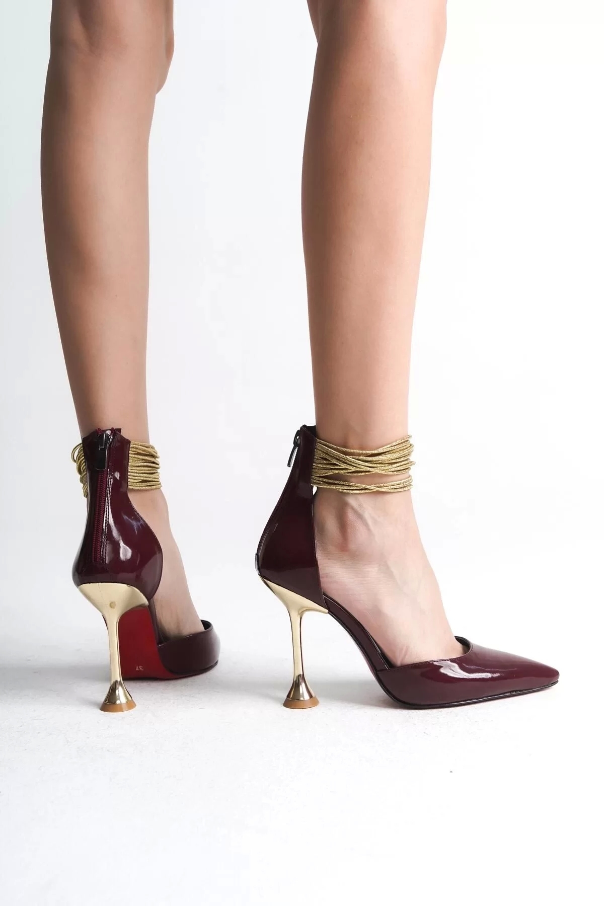 Kadın Altın Bileklikli Çan Topuklu Ayakkabı Sivri Burun Abiye Ayakkabı için 125 değerlendirme