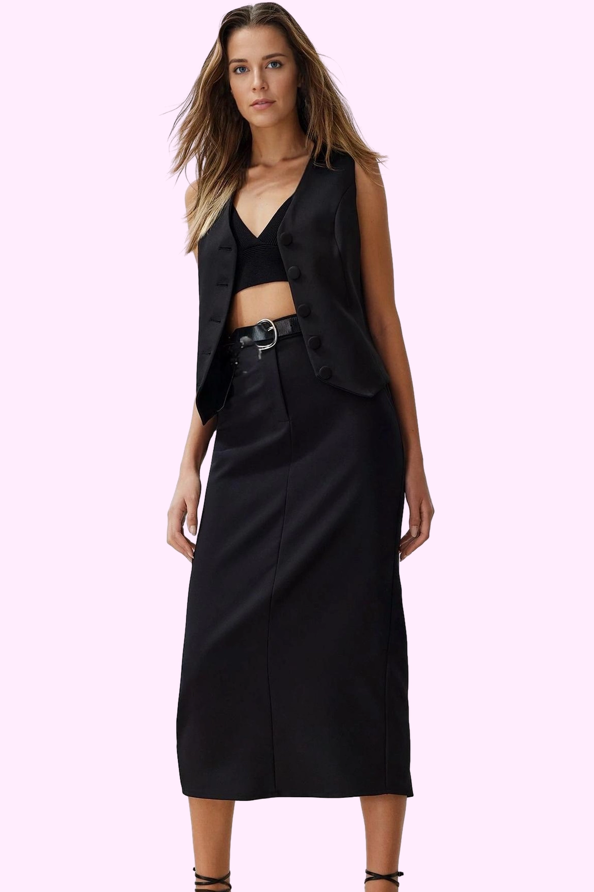 Kadın Midi Boy Keten Etek Düz Desen Basic Siluet Günlük Kombinler Yaz Aylarının Vazgeçilmezi